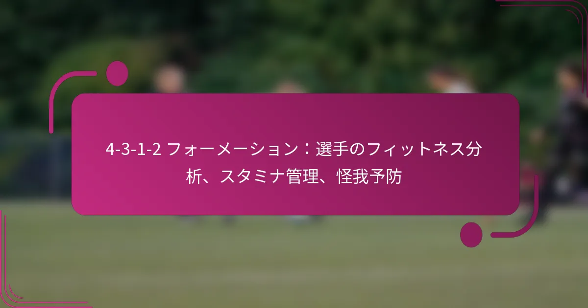 4-3-1-2フォーメーションは、ミッドフィールドのコントロールを重視し、守備と攻撃のバランスの取れたアプローチを強調するサッカーの戦術的セットアップです。このフォーメーションで成功するためには、選手はフィットネス、スタミナ管理、怪我予防に注力し、攻撃と守備の役割の要求に効果的に応えられるようにする必要があります。