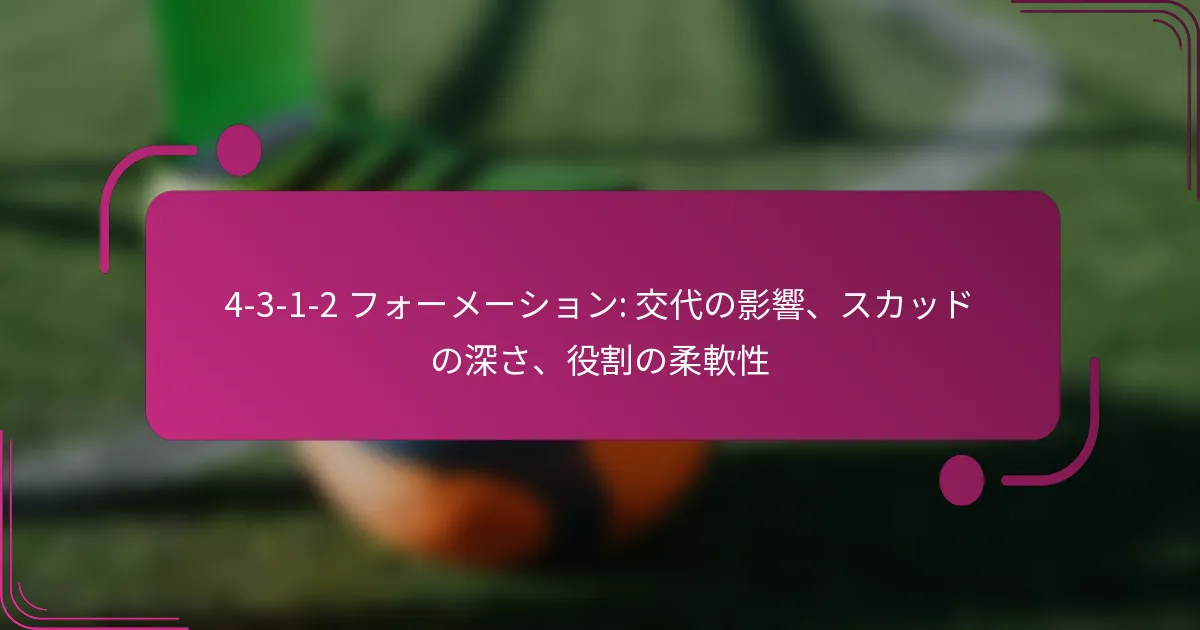 4-3-1-2フォーメーションは、サッカーにおける戦術的なセットアップで、4人のディフェンダー、3人のミッドフィールダー、1人の攻撃的ミッドフィールダー、2人のフォワードで構成されており、強力なミッドフィールドの存在を強調しています。このフォーメーションでは交代が重要な役割を果たし、コーチが戦術を調整し、選手のエネルギーをリフレッシュすることを可能にします。また、スカッドの深さは、一貫したパフォーマンスと選手の疲労管理をシーズンを通じて効果的に行うことを保証します。