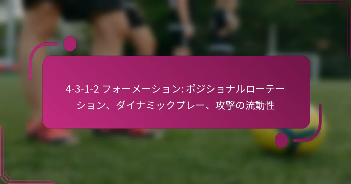 4-3-1-2フォーメーションにおけるポジションローテーションは、選手がダイナミックにポジションをシフトさせてスペースを作り、攻撃の流動性を維持することを含みます。このアプローチにより、チームは防御の配置に迅速に適応し、協調した動きを通じて攻撃の機会を最大化できます。