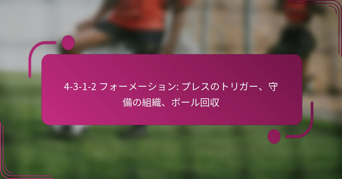4-3-1-2フォーメーションは、サッカーにおける戦術的なセットアップであり、4人のディフェンダー、3人のミッドフィールダー、1人の攻撃的ミッドフィールダー、2人のフォワードで構成されています。このフォーメーションは、強力なミッドフィールドの存在を強調し、守備の堅実さを提供するだけでなく、攻撃の柔軟性も可能にするため、ゲームをコントロールしようとするチームにとって理想的です。プレスのトリガーを理解し、守備の組織を維持することは、ボール回収と攻撃と守備の間の移行を効果的に行うために不可欠です。