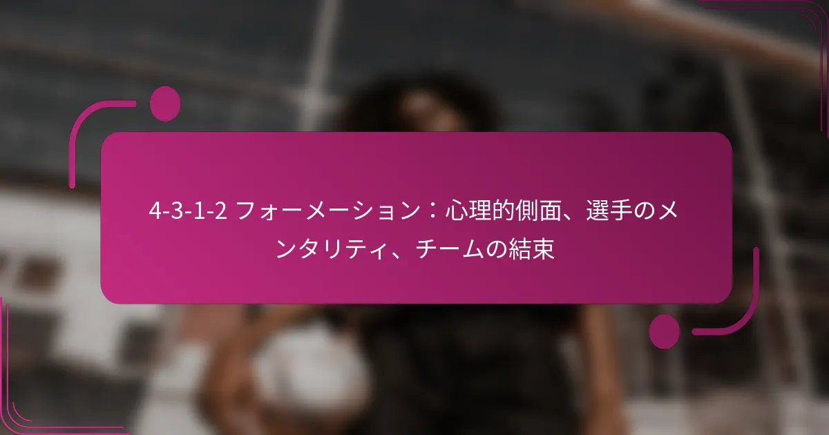 4-3-1-2フォーメーションは、サッカーにおける戦術的なセットアップであり、強力な中盤の存在と二人のストライカーを強調し、守備と攻撃のバランスを生み出します。選手のメンタリティに関する心理的側面、特に自信とコミュニケーションは、このフォーメーションの効果において重要な役割を果たします。さらに、信頼と共有された目標を通じてチームの結束を育むことは、パフォーマンスを最大化し、選手がこの戦略的枠組みの中で調和して働くことを確保するために不可欠です。