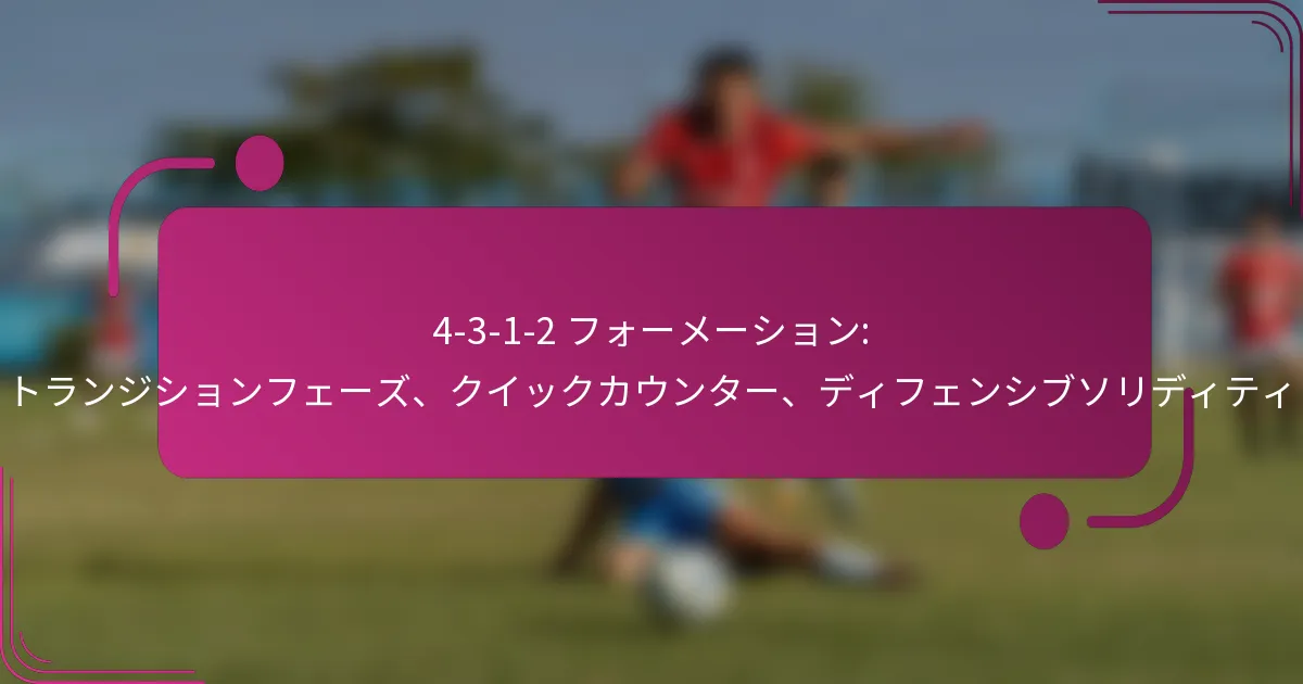 4-3-1-2フォーメーションは、サッカーにおける戦術的な配置で、4人のディフェンダー、3人のミッドフィルダー、1人の攻撃的ミッドフィルダー、2人のフォワードで構成されています。このフォーメーションは、守備の堅実さと迅速なカウンターアタックを強調しており、バランスの取れたプレースタイルを求めるチームに人気があります。段階間の移行に対する構造化された戦略に焦点を当てることで、チームは勢いを維持し、相手の弱点を効果的に突くことができます。