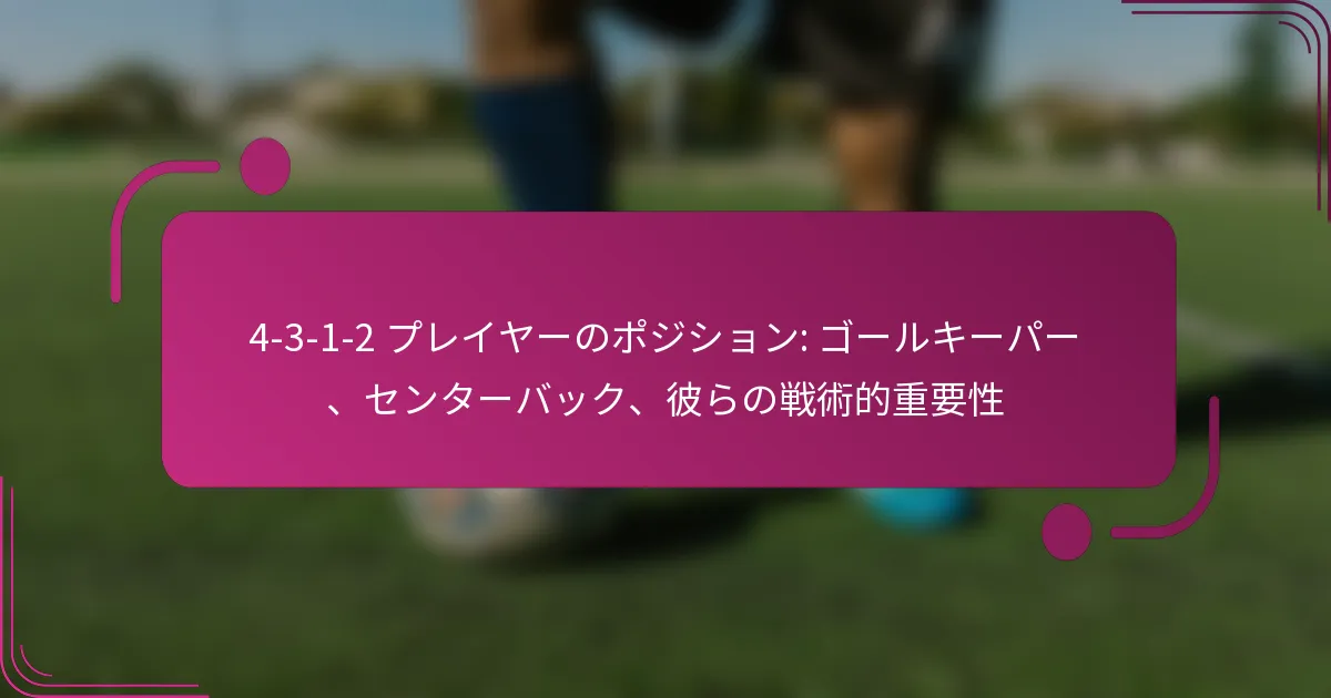 4-3-1-2フォーメーションは、サッカーにおける戦術的なセットアップであり、強力な中盤の存在を強調しつつ、守備の安定性を確保します。このフォーメーションでは、ゴールキーパーが重要な役割を果たし、シュートストップや守備の組織化を担当します。一方、センターバックは守備の堅実さを維持し、攻撃への移行をサポートする重要な役割を担います。これらのポジションは、チーム全体の効果的なプレーに不可欠です。