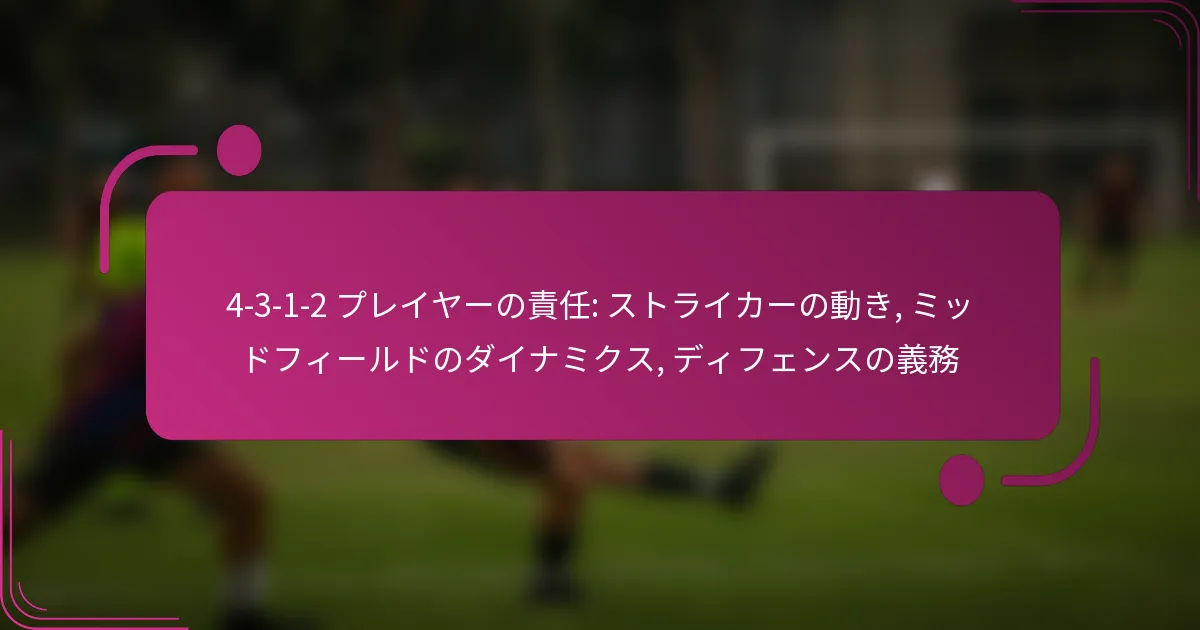 4-3-1-2フォーメーションにおけるストライカーは、攻撃と守備の両方のフェーズで重要な役割を果たします。彼らの責任には、効果的なポジショニング、動きのパターン、中盤との相互作用が含まれ、得点機会を創出しながら、プレスや守備の義務にも貢献します。