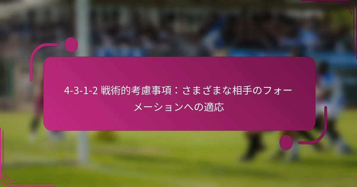 4-3-1-2フォーメーションは、防御の堅実さと攻撃の可能性を組み合わせたバランスの取れたアプローチを提供します。さまざまな相手のフォーメーションに効果的に適応するためには、高度な戦術的考慮事項を理解することが不可欠です。