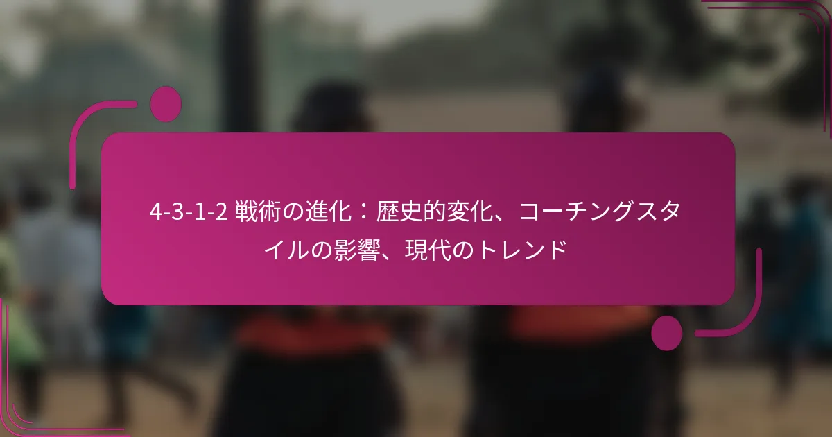 4-3-1-2フォーメーションは、サッカーにおける戦術的なセットアップで、4人のディフェンダー、3人のミッドフィールダー、1人の攻撃的ミッドフィールダー、2人のフォワードを特徴とし、強力なミッドフィールダーの存在を強調しています。年月が経つにつれて、このフォーメーションはコーチング哲学や選手の能力の変化に影響されながら大きく進化し、現代サッカーの戦術的要求に適応してきました。攻撃と守備の両方における柔軟性が、さまざまなチームやコーチの間で人気のある選択肢となり、その効果をフィールド上で示しています。